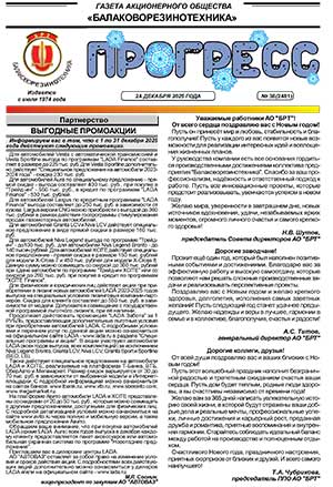 Читайте материалы свежего выпуска заводской корпоративной газеты «Прогресс» №36 от 24 декабря 2025г. Электронная версия многотиражки доступна на официальном сайте АО «БРТ». Откройте вкладку «О предприятии», далее пункт меню – газета «Прогресс». Можно, кстати, полистать всю подшивку целиком.