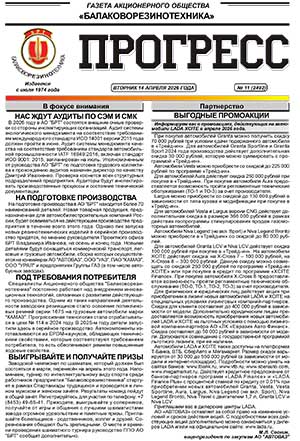 Читайте материалы свежего выпуска заводской корпоративной газеты «Прогресс» №11 от 14 апреля 2026г. Электронная версия многотиражки доступна на официальном сайте АО «БРТ». Откройте вкладку «О предприятии», далее пункт меню – газета «Прогресс». Можно, кстати, полистать всю подшивку целиком.